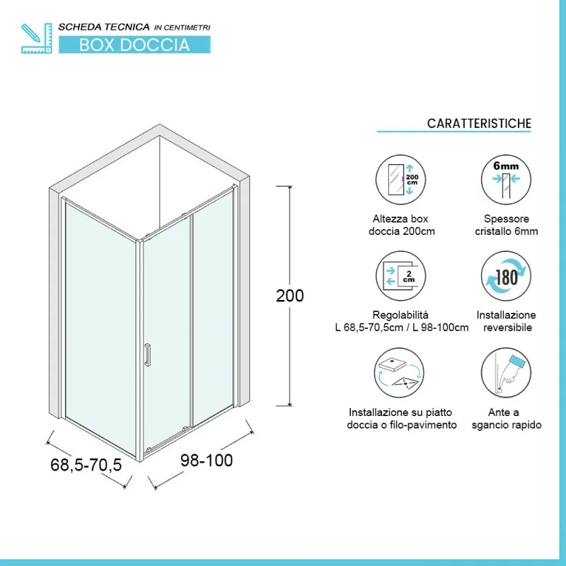 Box doccia angolare 70x100 cm scorrevole in cristallo trasparente Ted