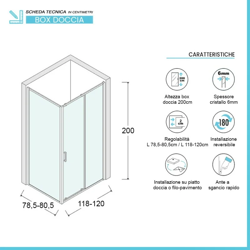 Box doccia angolare 80x120 cm scorrevole in cristallo serigrafato Ted
