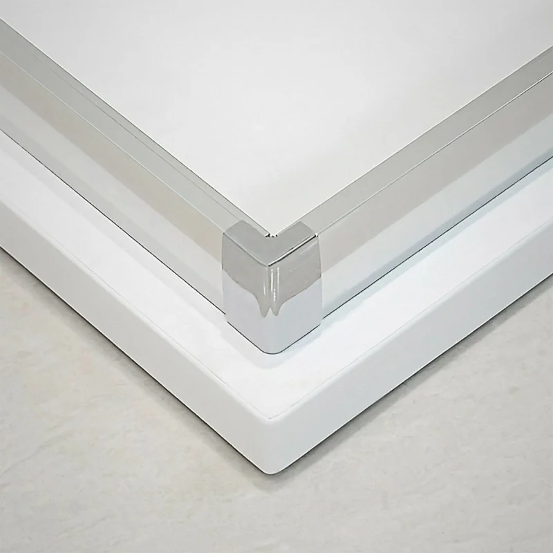 • Profili in alluminio cromato e vetro trasparente 6 mm;