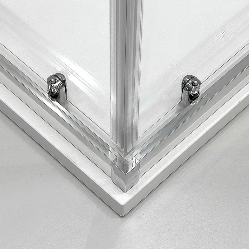 Le ante sono dotate di sgancio rapido,ideale per facilitare la pulizia sui punti non raggiungibili normalmente,e chiusura magnetica che rende improbabile la fuoriuscita dell’acqua.  Per una perfetta installazione,il box doccia è regolabile fino a 2 cm in meno per ogni lato.