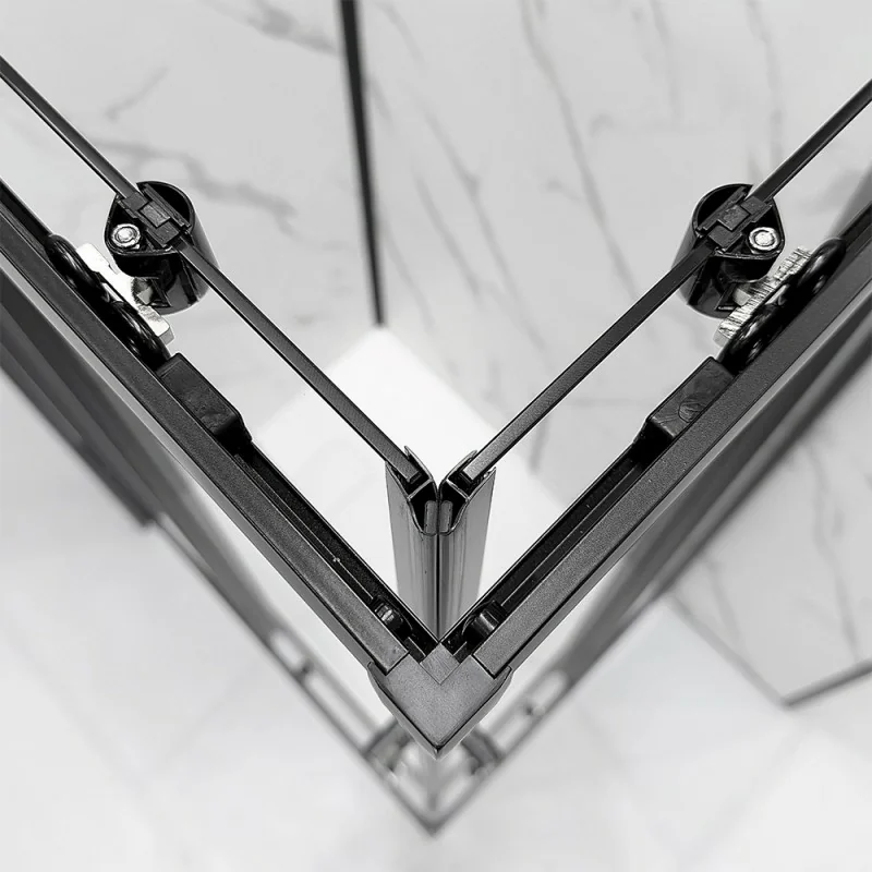 L’anta è dotata di chiusura magnetica con guarnizione nero opaca,installazione reversibile per una apertura sia da destra che da sinistra e solido sistema di scorrimento su rotelle in teflon,che garantiscono la massima fluidità e durata nel tempo. Può essere installato sia filo pavimento che su piatto doccia,con una tolleranza in fase di installazione pari a 2 cm.