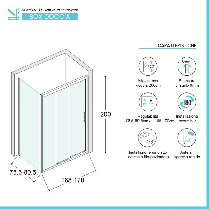 Box doccia 80x170 cm scorrevole caratteristiche tecniche: