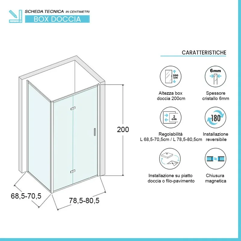 Box doccia 70x80 cm a soffietto caratteristiche tecniche: