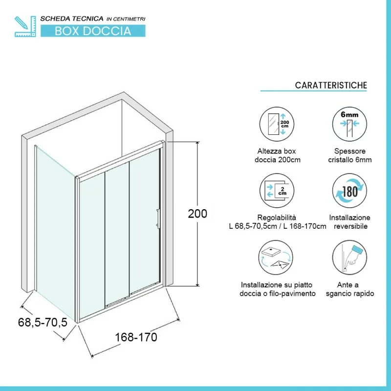 Box doccia 70x170 cm scorrevole caratteristiche tecniche: