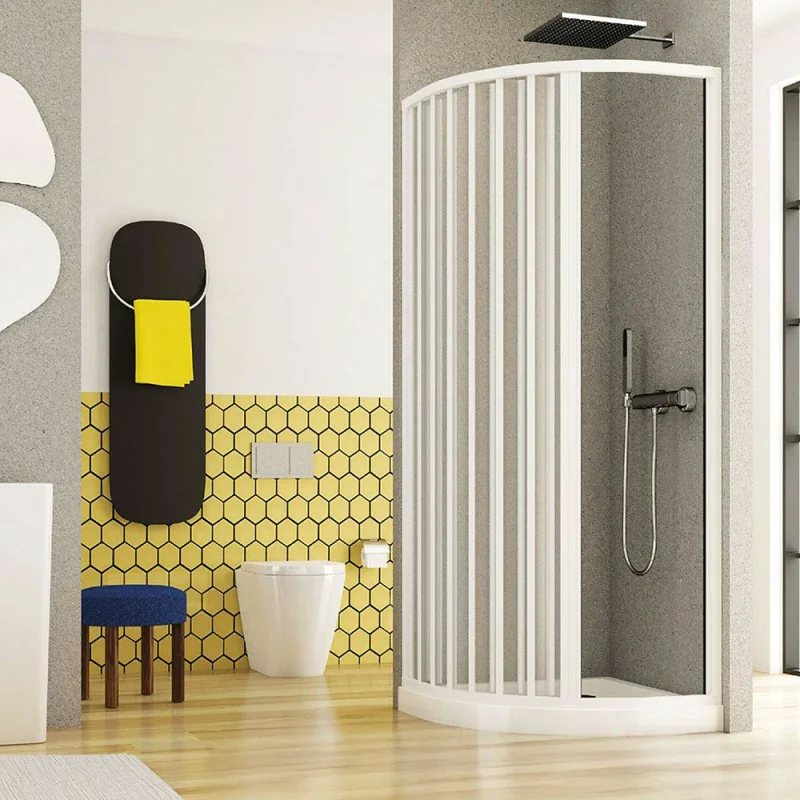 Cabina doccia 70x90 semicircolare a soffietto bianco in PVC riducibile con apertura Centrale Teti