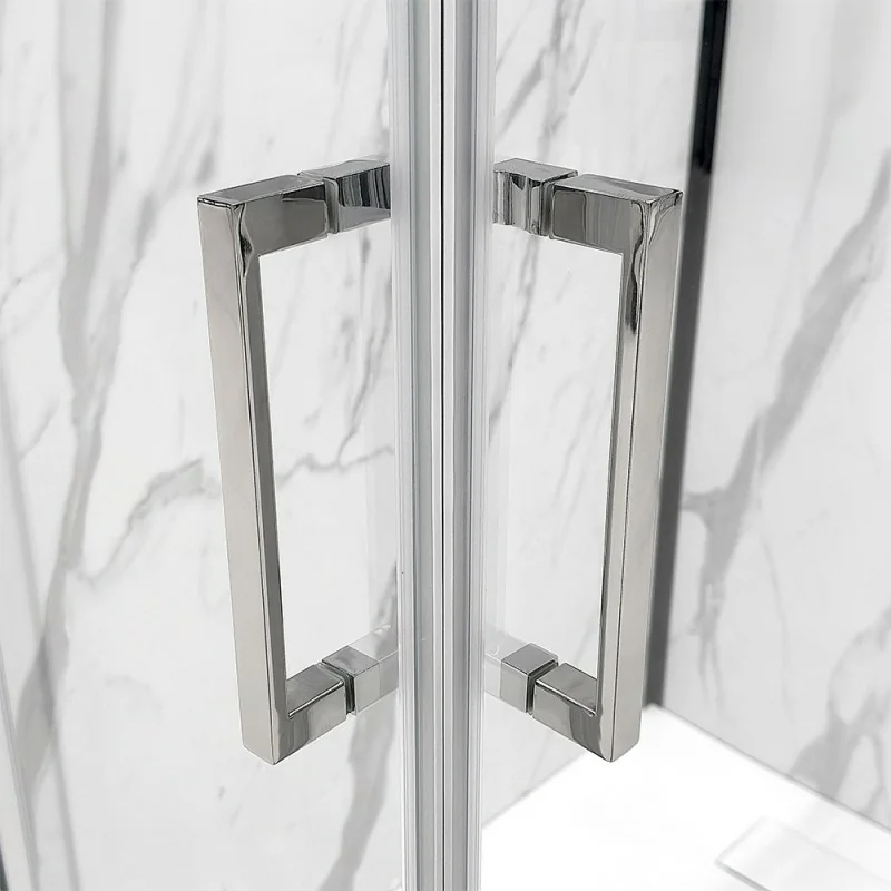 La parete doccia angolare della Linea Ted, con le sue dimensioni di 90x150 cm e un'altezza di 200 cm, garantisce ampio spazio e massima praticità d'uso. Il vetro trasparente da 6 mm di spessore assicura robustezza e luminosità, mentre i profili cromati conferiscono un tocco di eleganza contemporanea. Grazie all'installazione reversibile e alle doppie rotelle in teflon, l'apertura risulta fluida e silenziosa, adattandosi perfettamente alle tue esigenze di spazio.