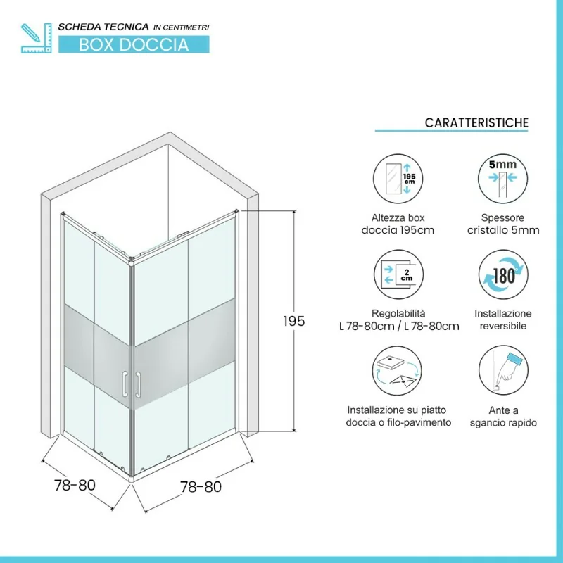 Box doccia angolare 80x80 – caratteristiche tecniche: