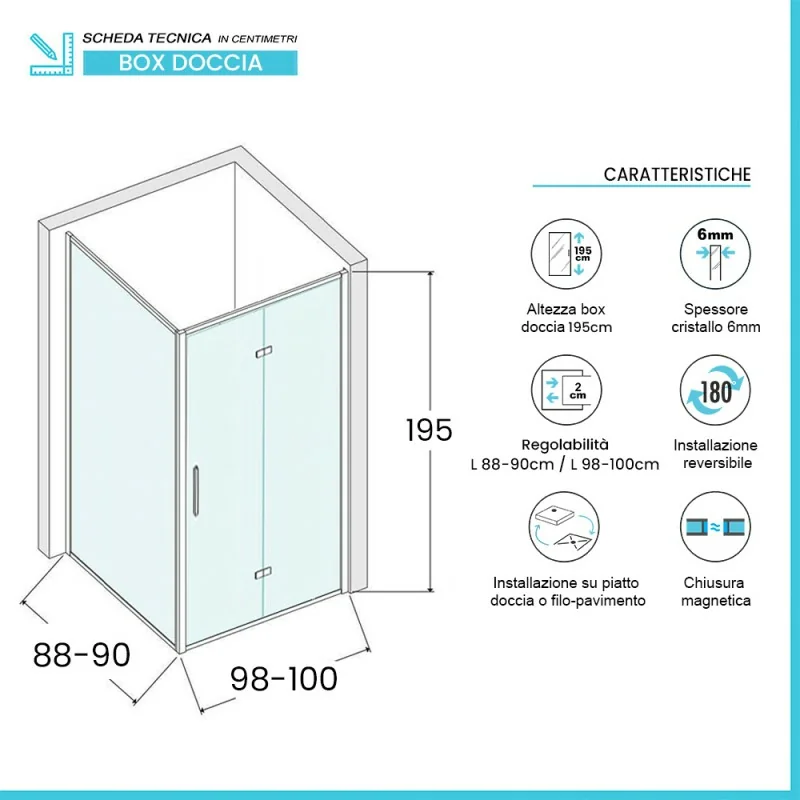 Box doccia angolare 90x100 – caratteristiche tecniche: