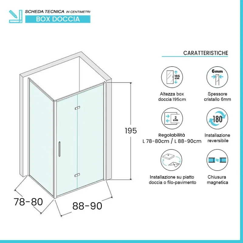 Box doccia angolare 80x90 – caratteristiche tecniche: