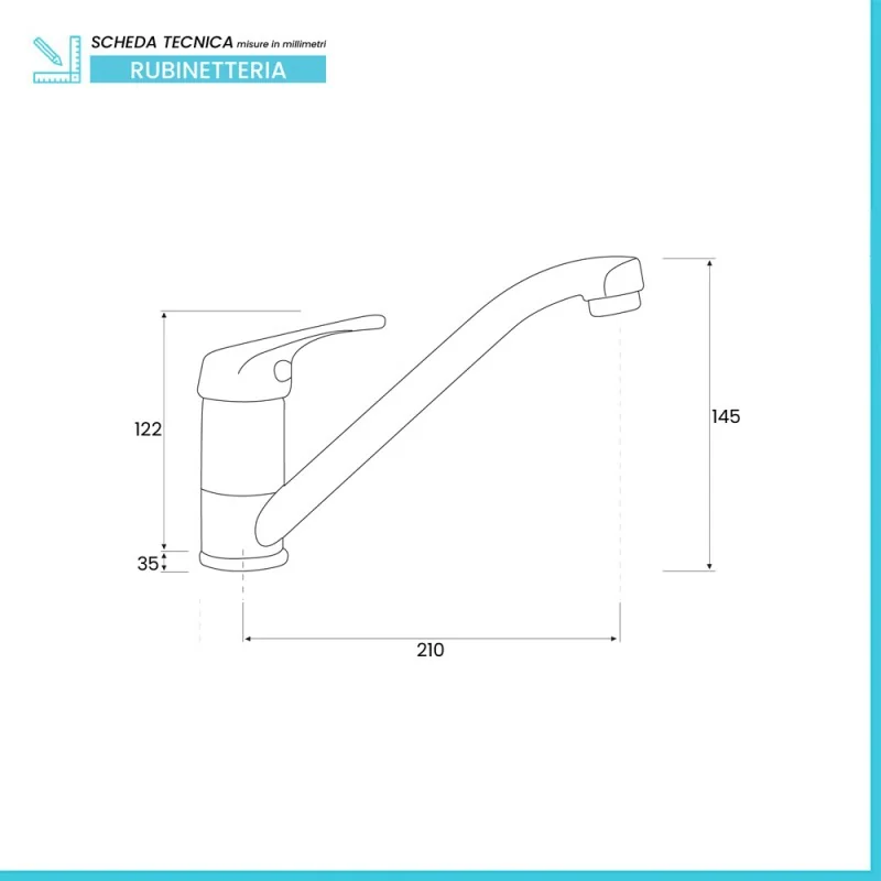 Miscelatore per lavello a canna bassa in ottone cromato Scheda tecnica Miscelatore per lavello a canna bassa in ottone cromato