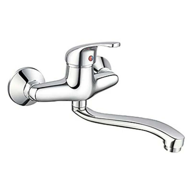 Miscelatore in ottone cromato esterno a muro per lavello Miscelatore lavello a muro canna curva