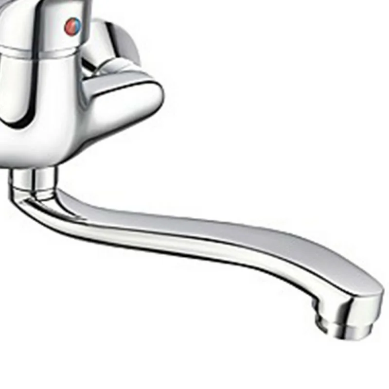 Rubinetto miscelatore a parete per vasche di lavaggio e lavello con canna curva in ottone cromato