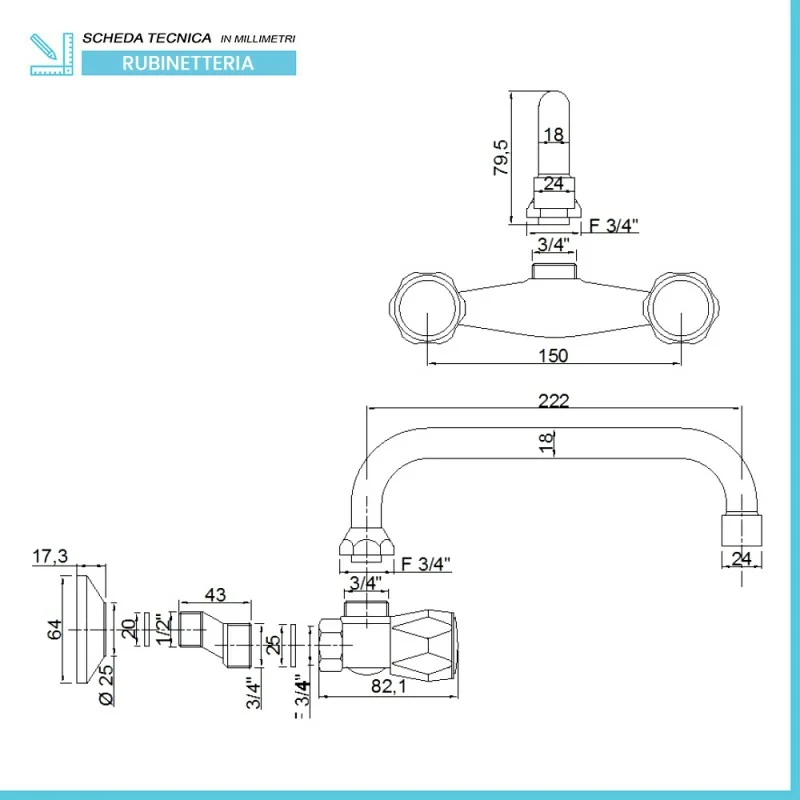 Rubinetto cucina che rappresenta una scelta pratica e di qualità ad un prezzo contenuto,pensato per gli ambienti cucina e lavanderia. L’installazione a parete è una scelta salvaspazio per gli ambienti di uso quotidiano.