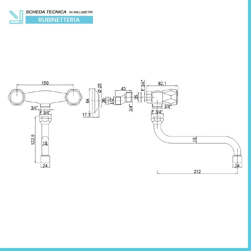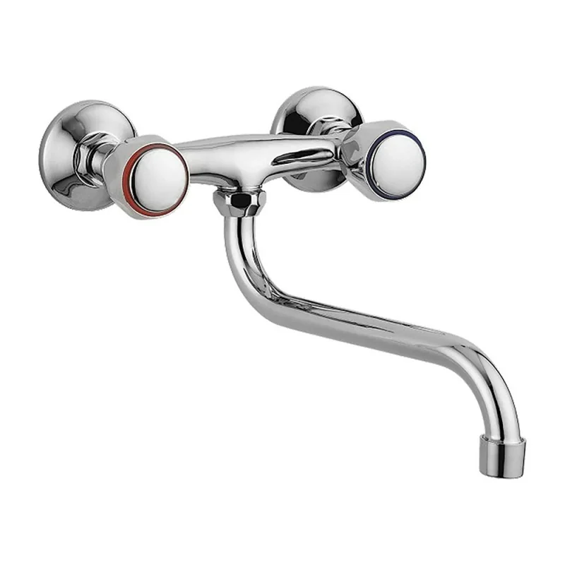 Rubinetto cucina che rappresenta una scelta pratica e di qualità ad un prezzo contenuto,pensato per gli ambienti cucina e lavanderia. L’installazione a parete è una scelta salvaspazio per gli ambienti di uso quotidiano. La doppia manopola permette di miscelare acqua fredda e calda a piacimento.