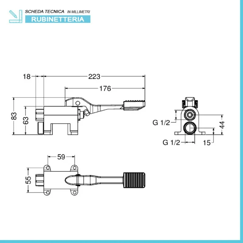 • Tipologia:rubinetto a pedale per installazione a pavimento;