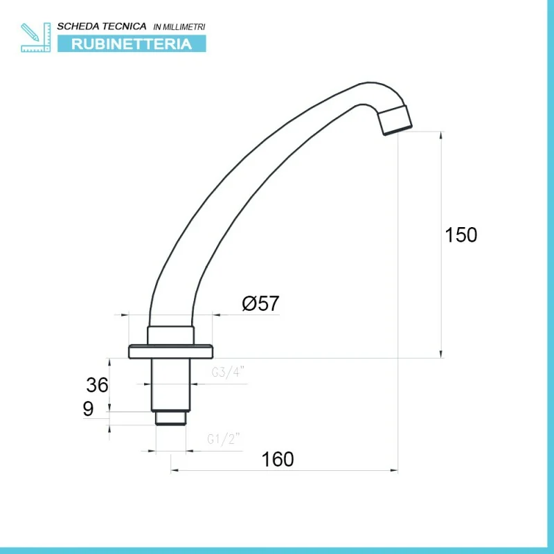 Realizzata in ottone Made in Italy cromato,resistente all'umidità ed ai segni d'usura nel tempo,ha attacchi standard da 1/2” compatibile con la maggior parte della rubinetteria sul mercato.