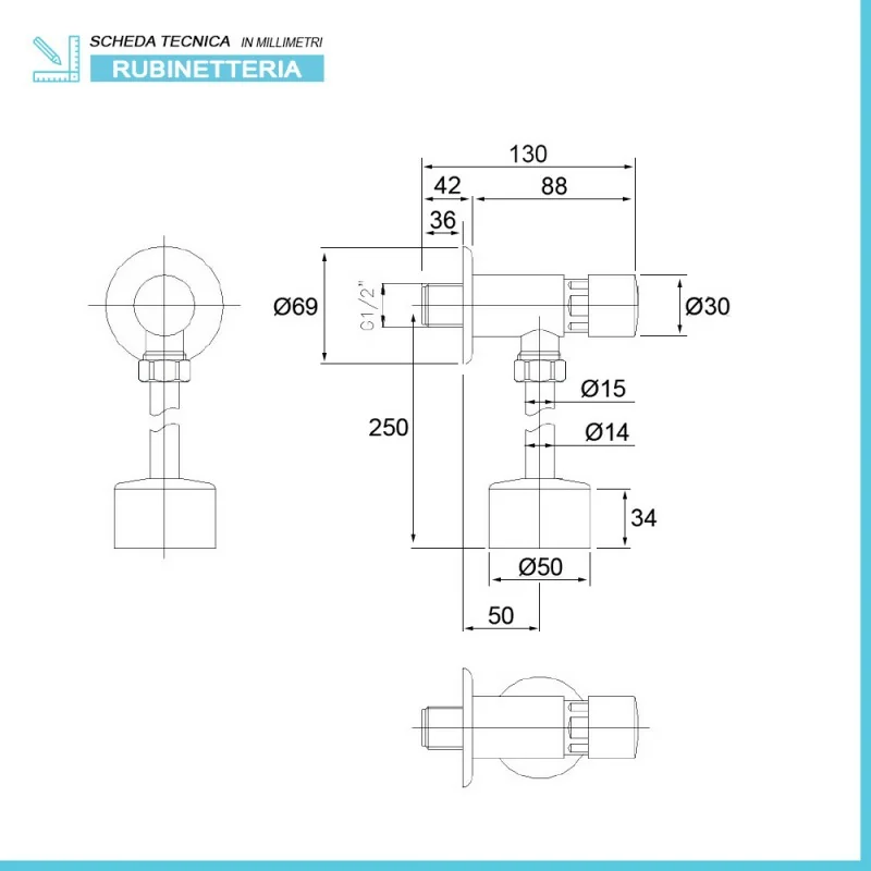 • COMPLETO di dado 1/2”,tubetto d.14,canotto regolabile,rosone a parete e bicchiere cromato;