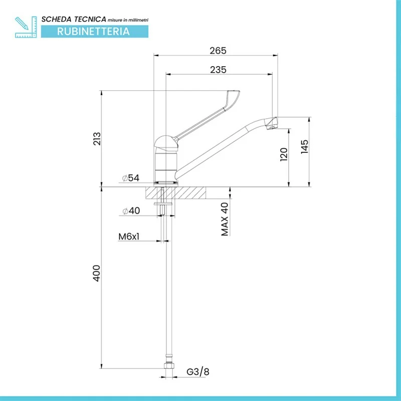 Miscelatore lavello in ottone cromato con leva clinica linea Ten Tiemme Scheda tecnica Miscelatore lavello in ottone cromato con leva clinica linea Ten Tiemme