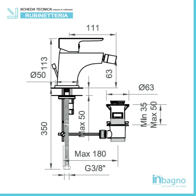 Miscelatore Bidet Serie Eco Cromato con Piletta automatica scheda tecnica Miscelatore Bidet Serie Eco Cromato con Piletta automatica