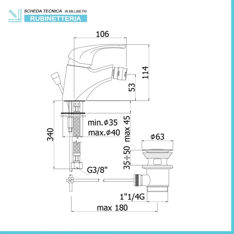 • Tipologia:miscelatore monocomando per bidet bagno;