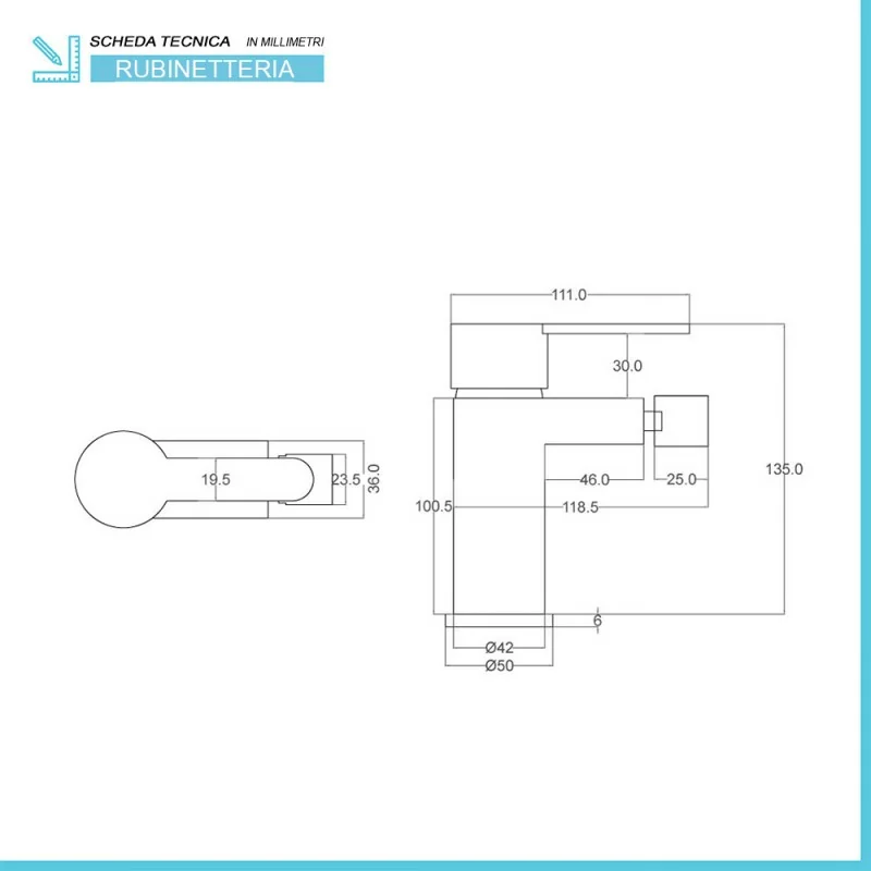 Realizzato interamente in ottone con finitura cromata,il miscelatore bidet ha una struttura imponente con la cartuccia da 35 mm.