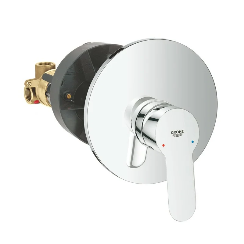 Il miscelatore doccia Grohe BauEdge,è sviluppato per offrire un prodotto dal design minimale e per controllare al meglio il consumo energetico dell'acqua. Si compone di parte esterna e di corpo incasso. Il rubinetto doccia sfrutta la tecnologia GROHE LongLife con una cartuccia a dischi ceramici da 46 mm.