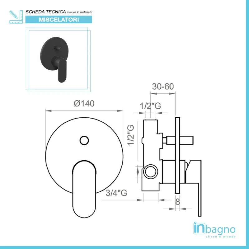 Riepilogo Caratteristiche Miscelatore a incasso: