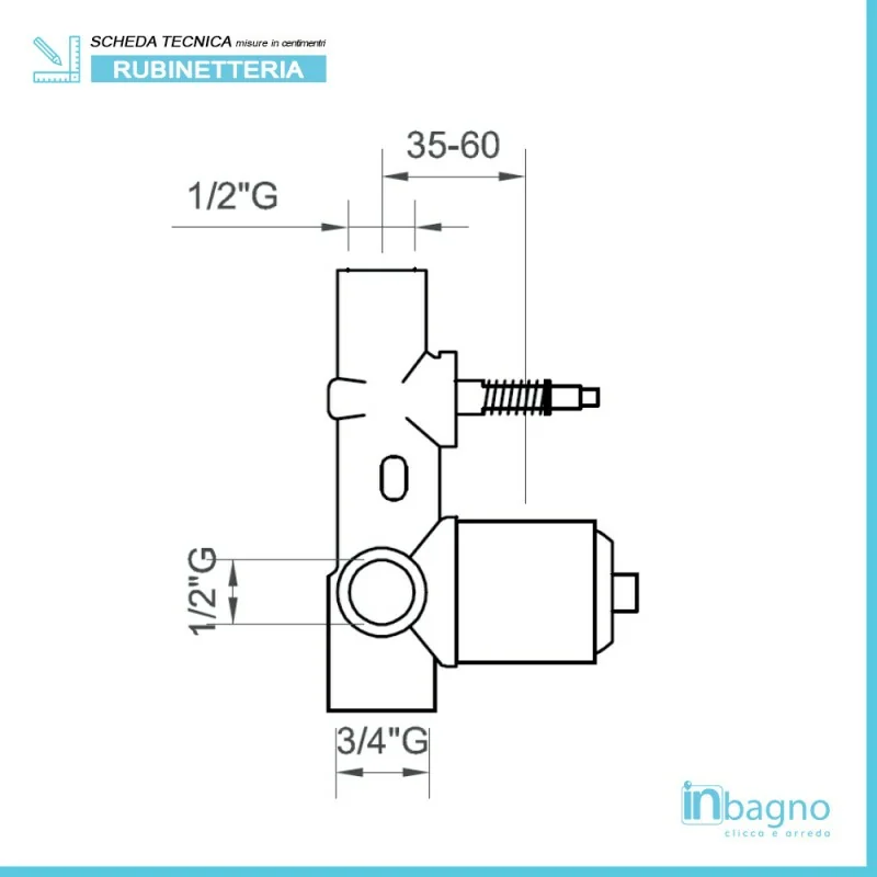 Miscelatore incasso con deviatore 2 vie serie Italia con corpo di incasso Miscelatore doccia a muro con deviatore a 2 vie serie Italia Scheda tecnica miscelatore incasso con deviatore 2 vie serie Italia completo di corpo incassato a muro Caratteristiche tecniche rubinetto doccia a 2 vie serie Italia in ottone cromato