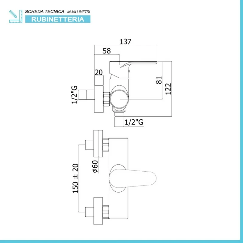 • Dimensione:interasse fori 15 cm x profondità 13.7 cm;