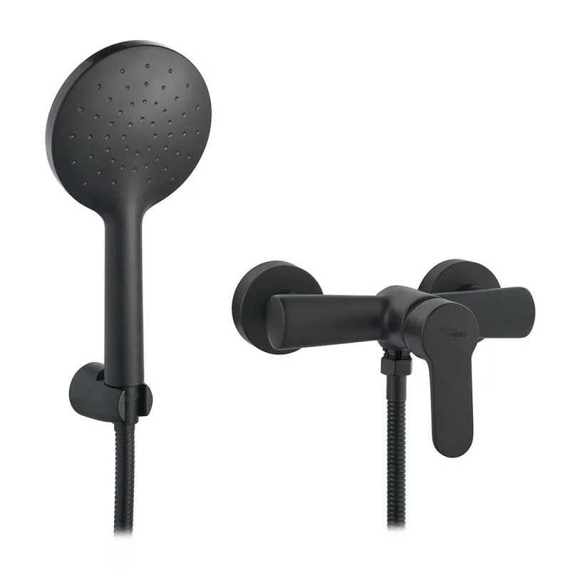 Miscelatore doccia esterno - in ottone nero opaco serie Paco completo di kit doccia con doccetta e supporto