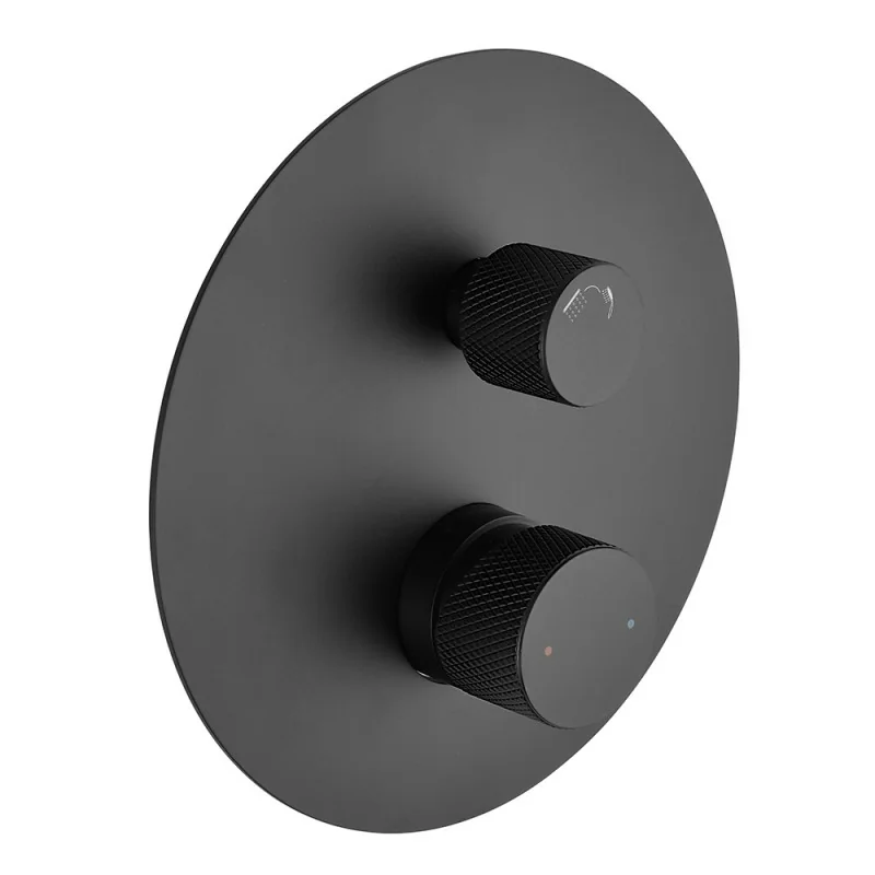Miscelatore doccia incasso nero opaco con deviatore e manopole zigrinate Gemini
