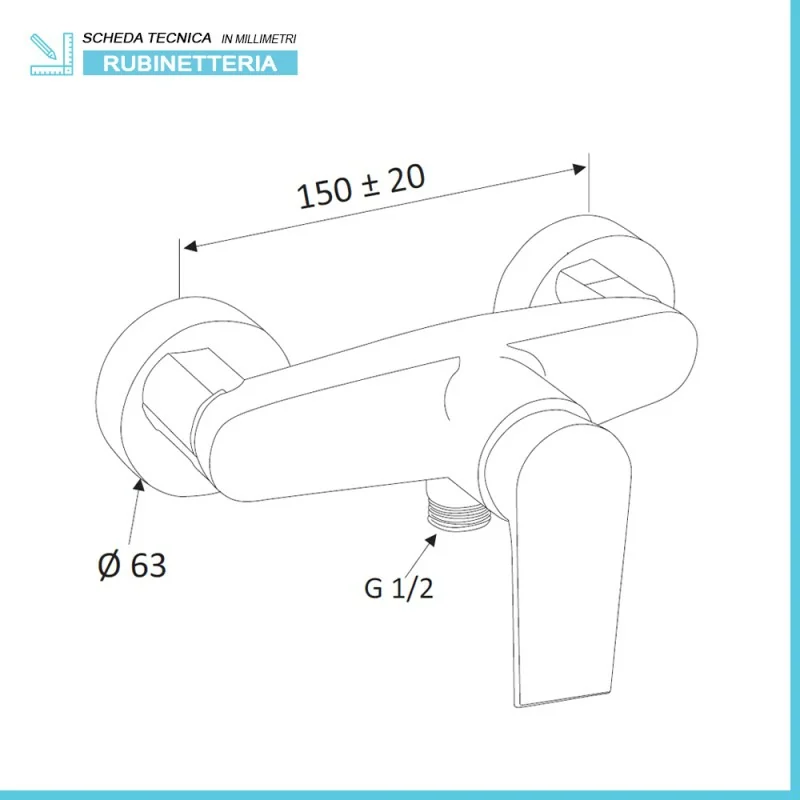 Rubinetto doccia esterno con leva monocomando e cartuccia a dischi ceramici