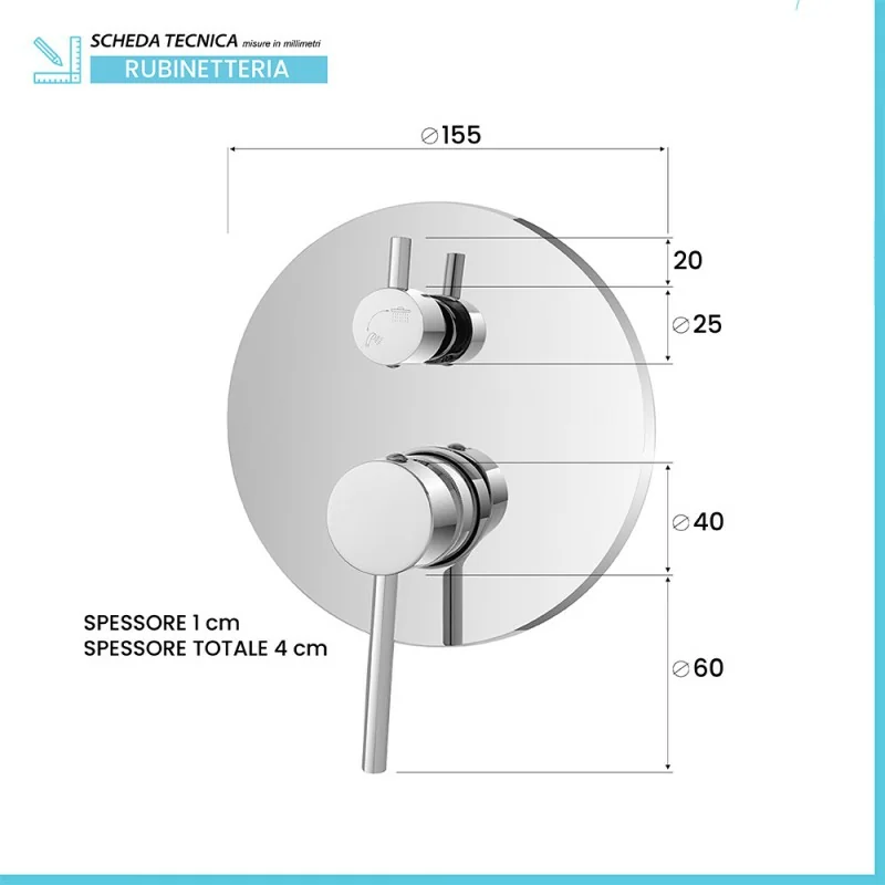 Miscelatore doccia a incasso in acciaio cromo con deviatore York scheda tecnica miscelatore doccia a incasso in acciaio cromo con deviatore York