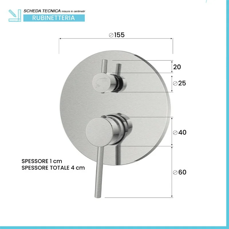 Miscelatore doccia a incasso in acciaio inox color nichel spazzolato con deviatore York scheda tecnica miscelatore doccia a incasso in acciaio inox color nichel spazzolato con deviatore York