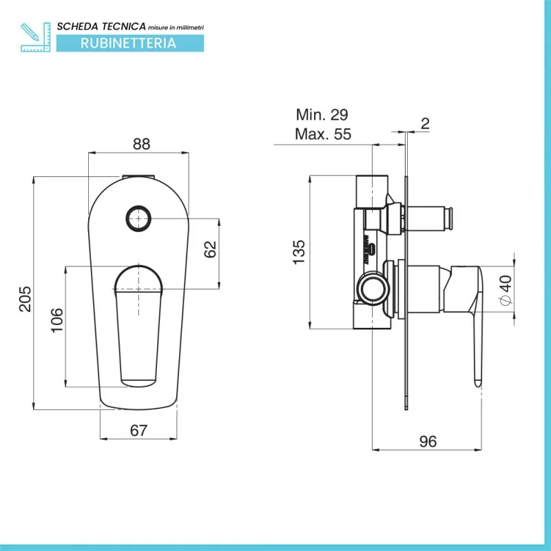 Miscelatore a incasso doccia con deviatore in ottone cromato monocomando linea Armonia Scheda tecnica Miscelatore a incasso doccia con deviatore in ottone cromato monocomando linea Armonia Scheda tecnica Miscelatore a incasso doccia con deviatore in ottone cromato monocomando linea Armonia