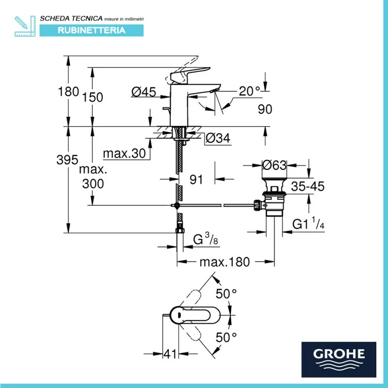 Miscelatore lavabo grohe bauedge taglia S in ottone cromo completo di piletta Caratteristiche Miscelatore lavabo grohe bauedge taglia S in ottone