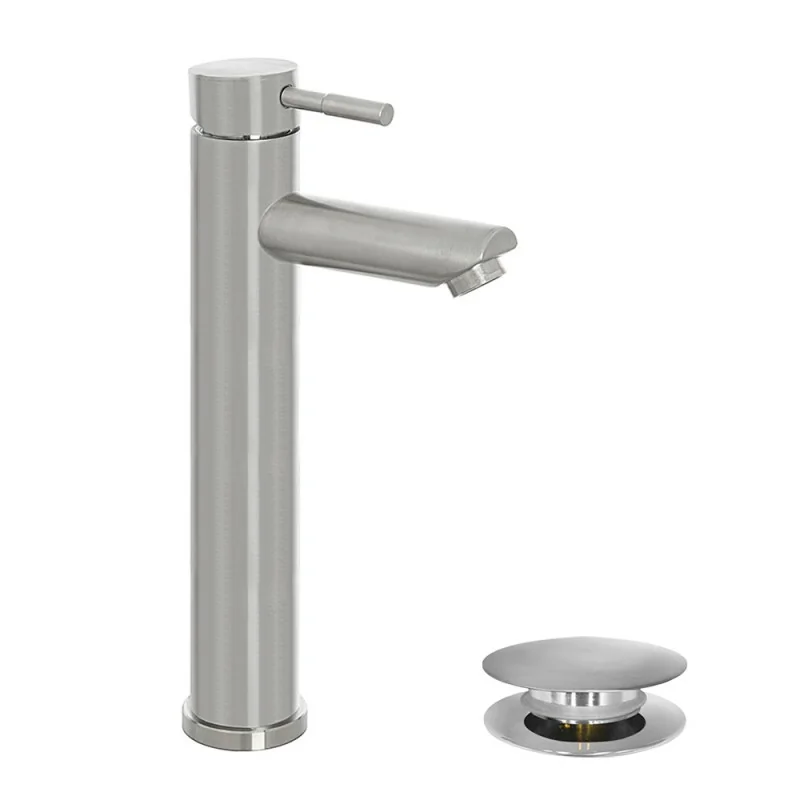 Miscelatore lavabo alto acciaio spazzolato e piletta click-clack | York