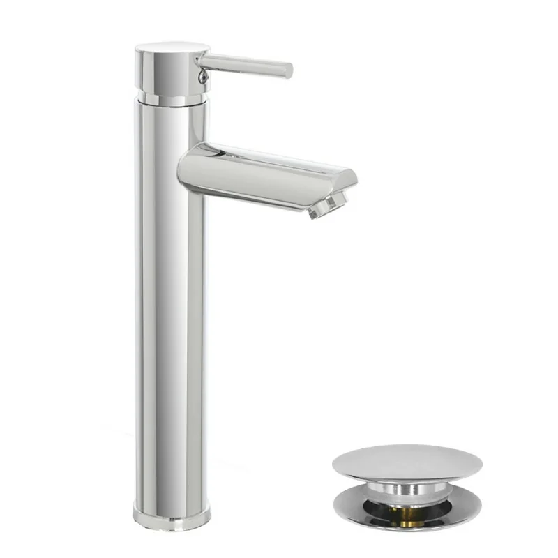 Miscelatore lavabo alto – in acciaio inox con finitura cromo lucido,completo di piletta click clack cromata