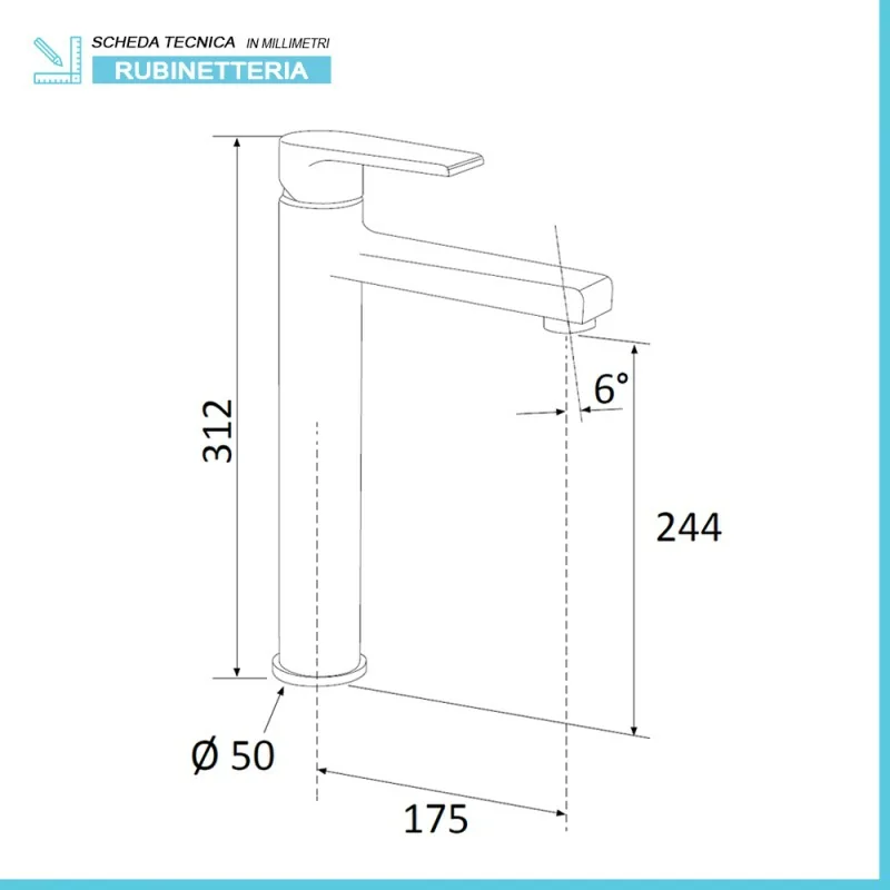 Il miscelatore lavabo alto è realizzato in ottone di alta qualità,resistente alla corrosione e destinato a durare nel tempo. È dotato di leva monocomando e innovativa cartuccia a dischi ceramici