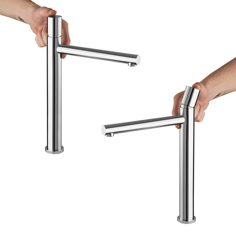 Miscelatore lavabo alto cromo senza leva in acciaio inox Gemini