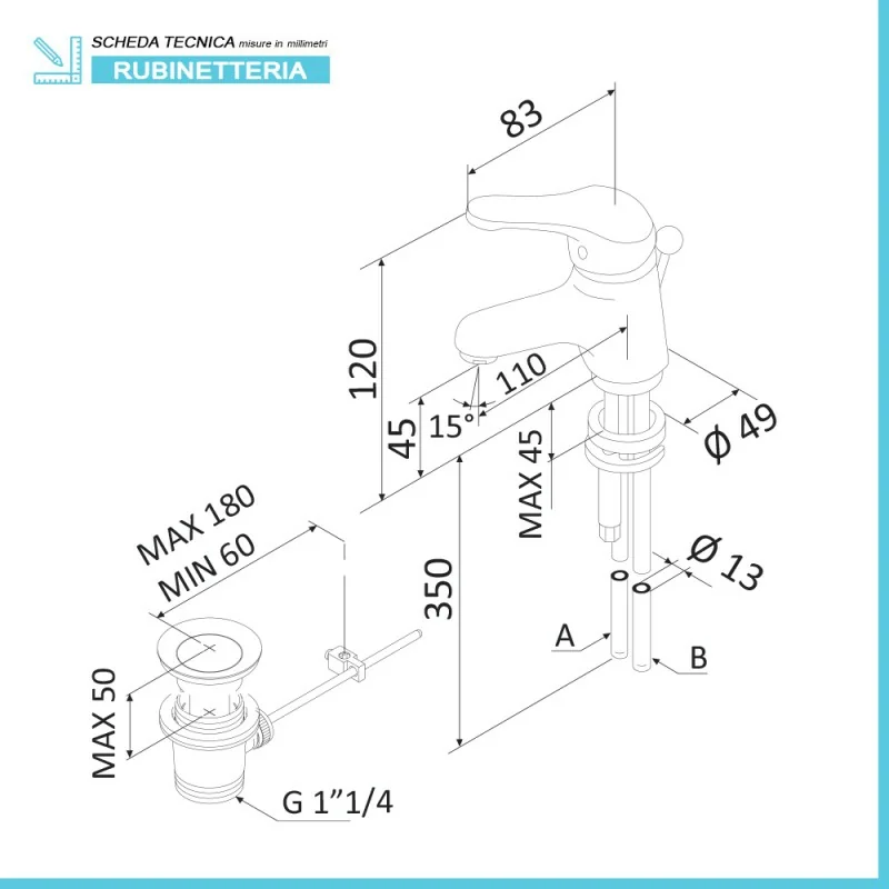 Rubinetto lavabo in ottone cromo di Rubinetterie Mariani Linea Astro Scheda Tecnica Rubinetto lavabo in ottone cromo di Rubinetterie Mariani Linea Astro