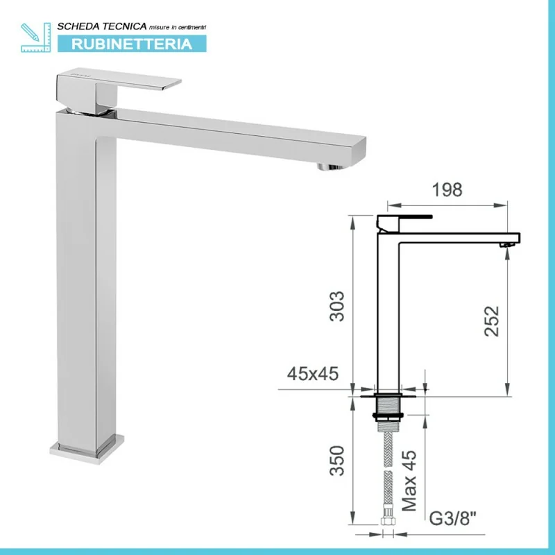 • Dimensioni lavabo:H 30,3 x p 19,8 cm;