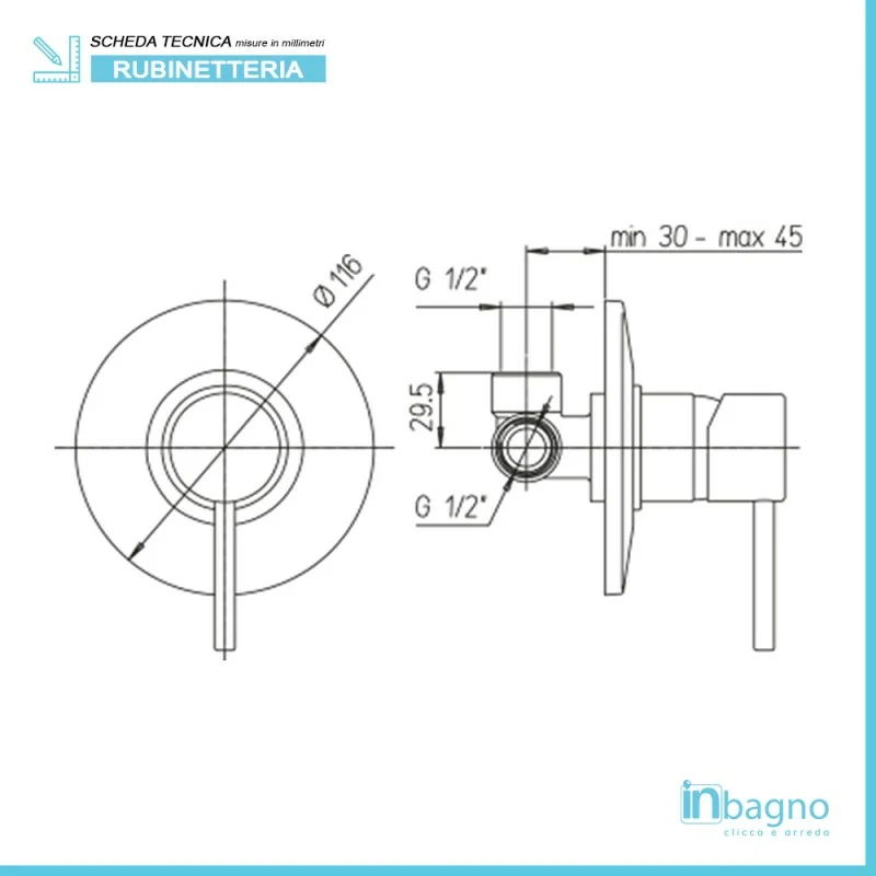 • Dimensione miscelatore doccia:diametro 11.6 cm;