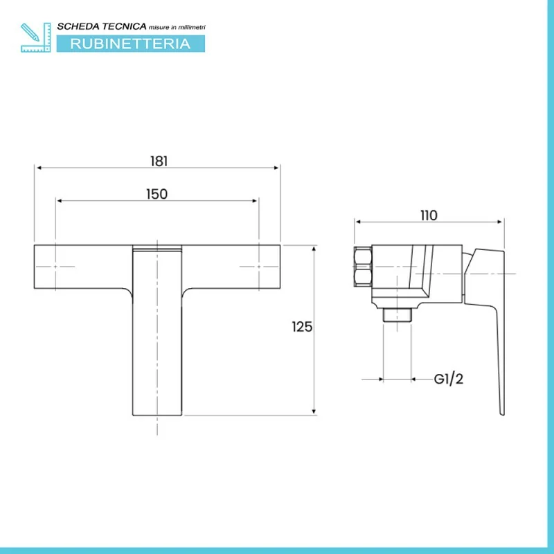 • Dimensioni doccia:L 18,1 x H 12,5 cm;