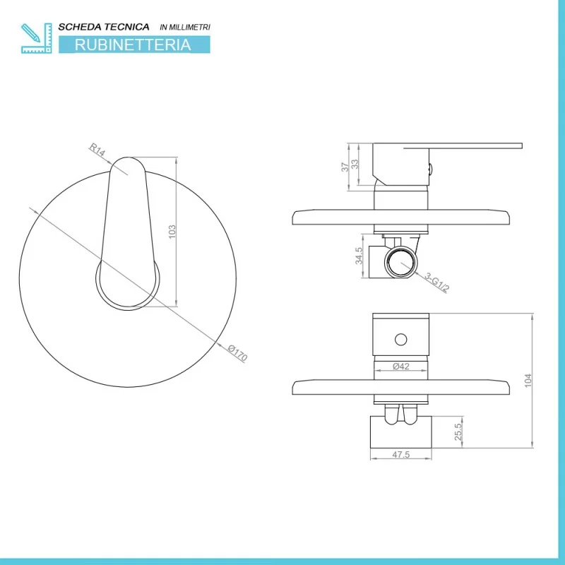• Dimensioni lavabo:H 16.5 x p 13.8 cm;