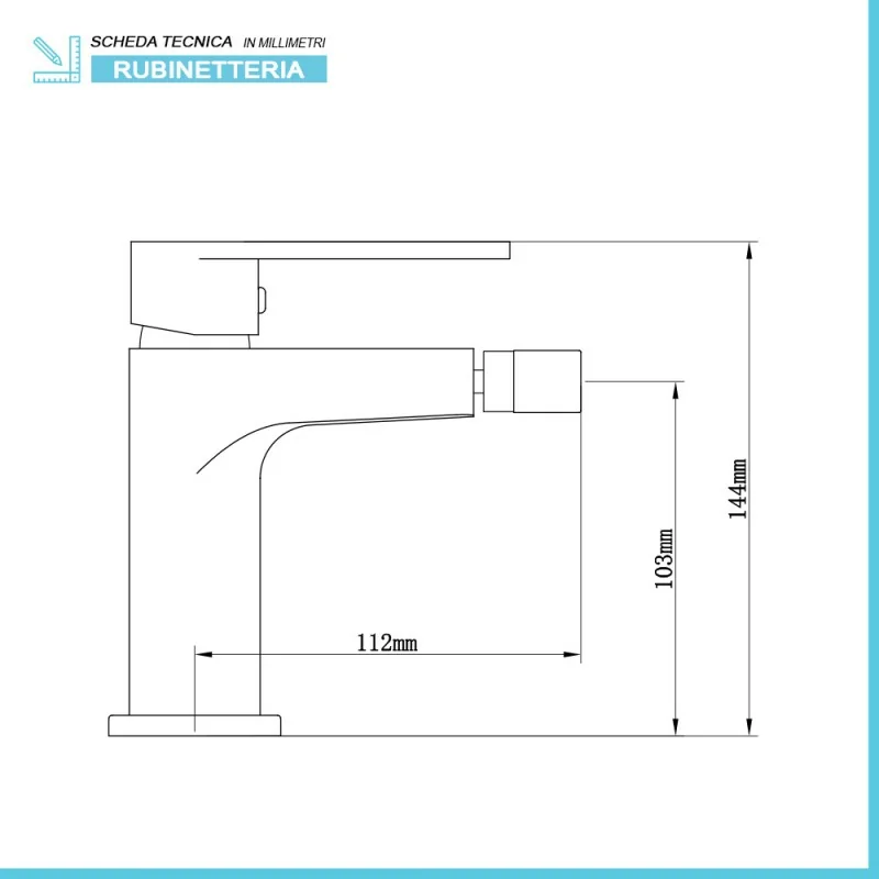 • Dimensioni rubinetto bidet:H 14,4 x p 11,2 cm;
