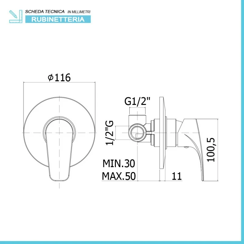 • Dimensioni doccia:ø 11,6 cm;
