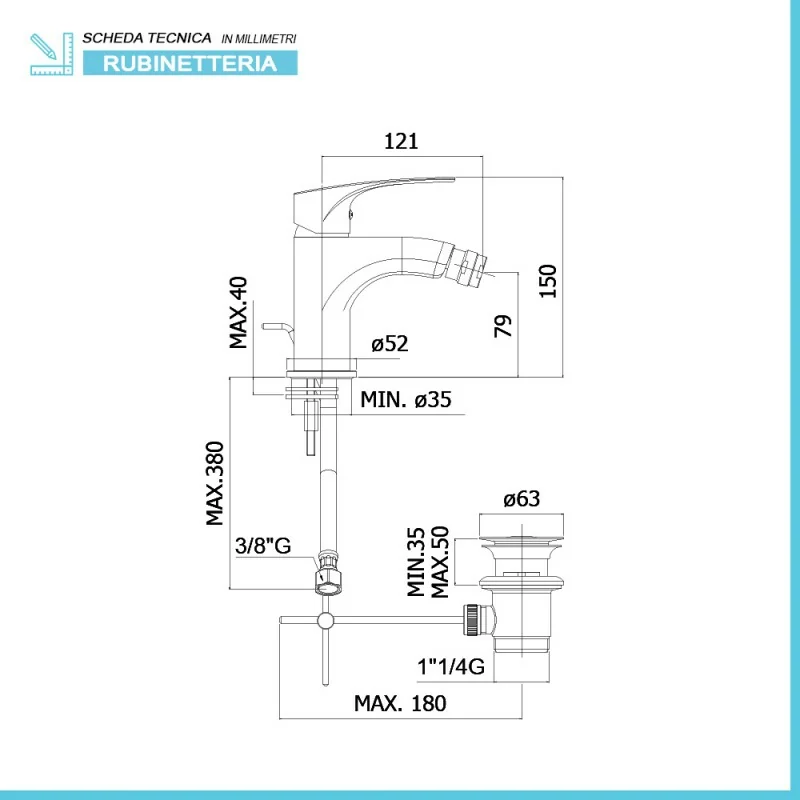 • Dimensioni bidet:H 15 x p 12,1 cm;