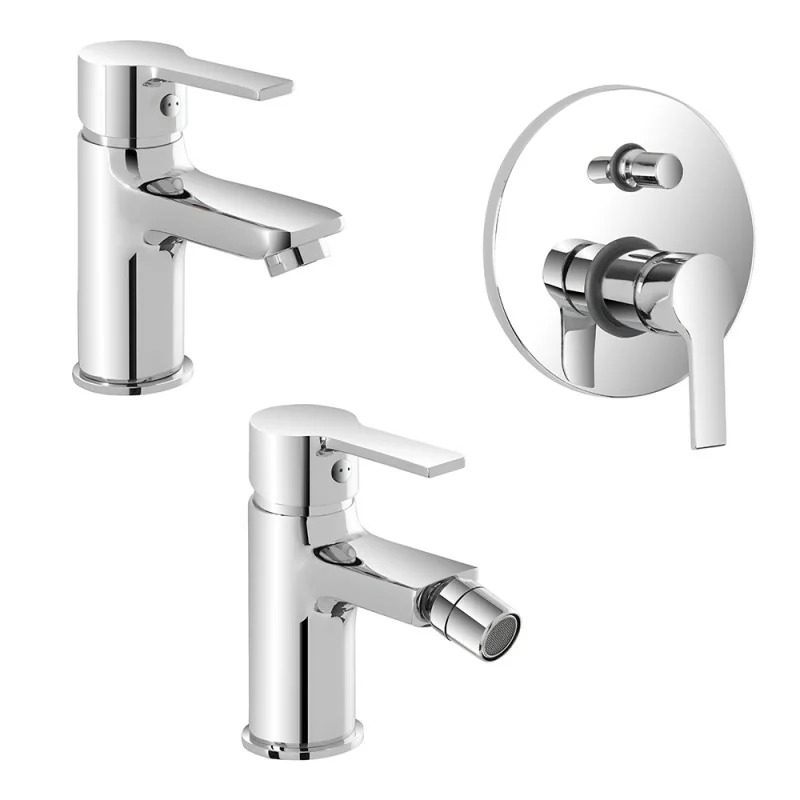Set miscelatori lavabo bidet e doccia con deviatore scarico incluso Prima