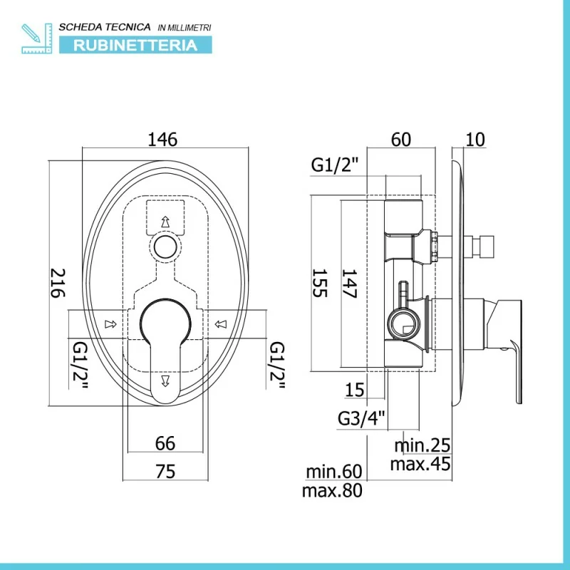 • Dimensioni lavabo:H 12,8 x p 10,8 cm;